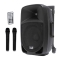 *IVA IncluidoAltavoz portátil de 12’’ con batería, reproductor MP3, tarjeta SD, USB, Bluetooth, control remoto IR. - Woofer de 12’’ - Driver de bocina de 1” - Potencia RMS de 100W, amplificador Clase D - Potencia máxima de 200W - Rango de frecuencia de 40Hz a 18kHz - Ecualizador gráfico de 5 bandas - 2 transmisores dinámicos inalámbricos UHF (863/865 MHz).