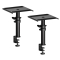 Pareja de soportes de sobremesa profesionales con fijación de abrazadera (clamp), diseñados para ahorrar espacio en el escritorio y colocar los monitores de estudio a la altura ideal. Color: Negro mate.